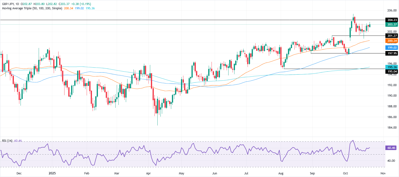 英镑/日元价格预测:延续上涨,瞄准204.00