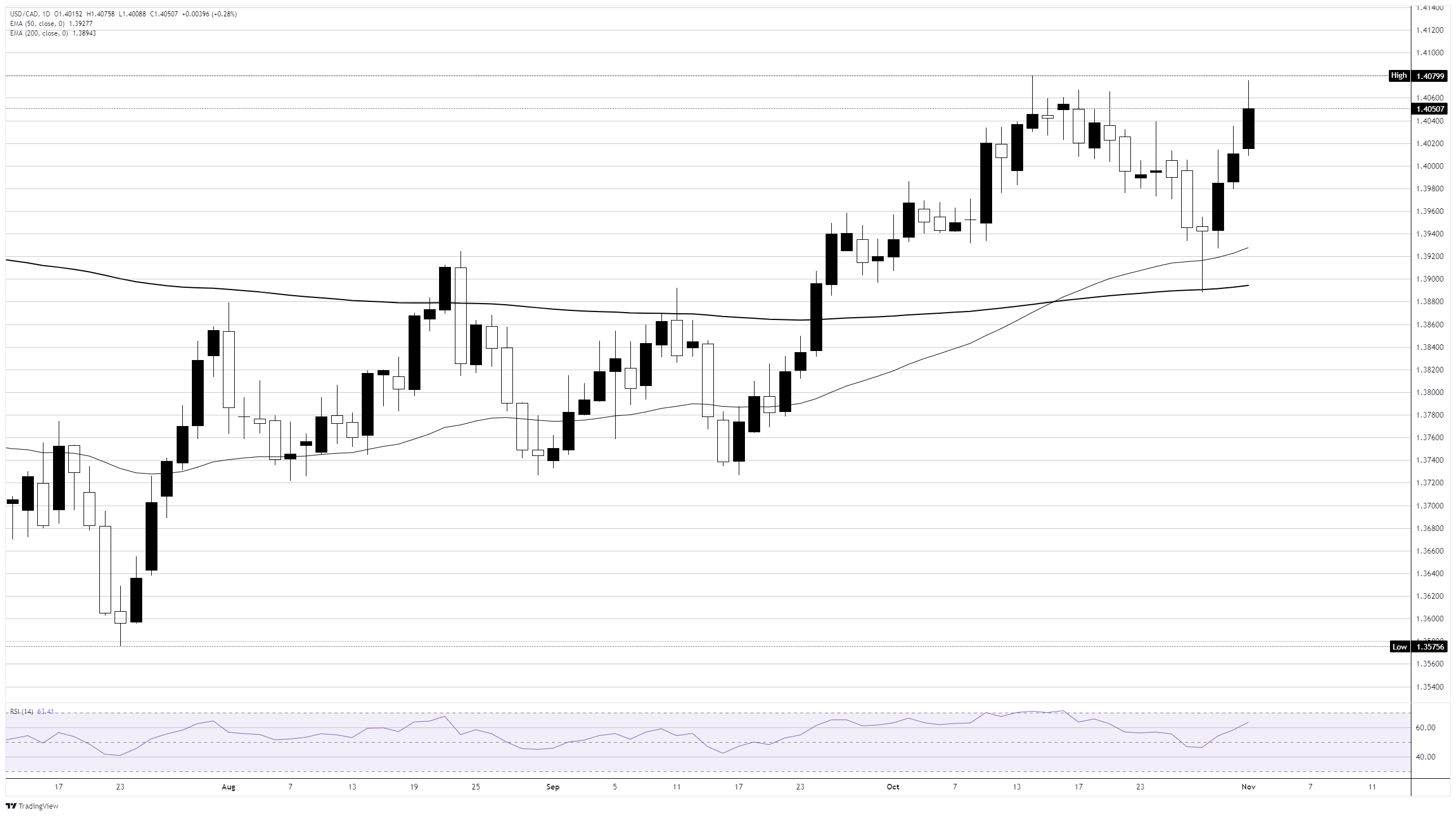 加元(CAD)在周一遭遇了持续的市场疲软,连续第三个交易日对美元(USD)下跌,回落至近期低点,使得美元/加元重新回到1.4050区域