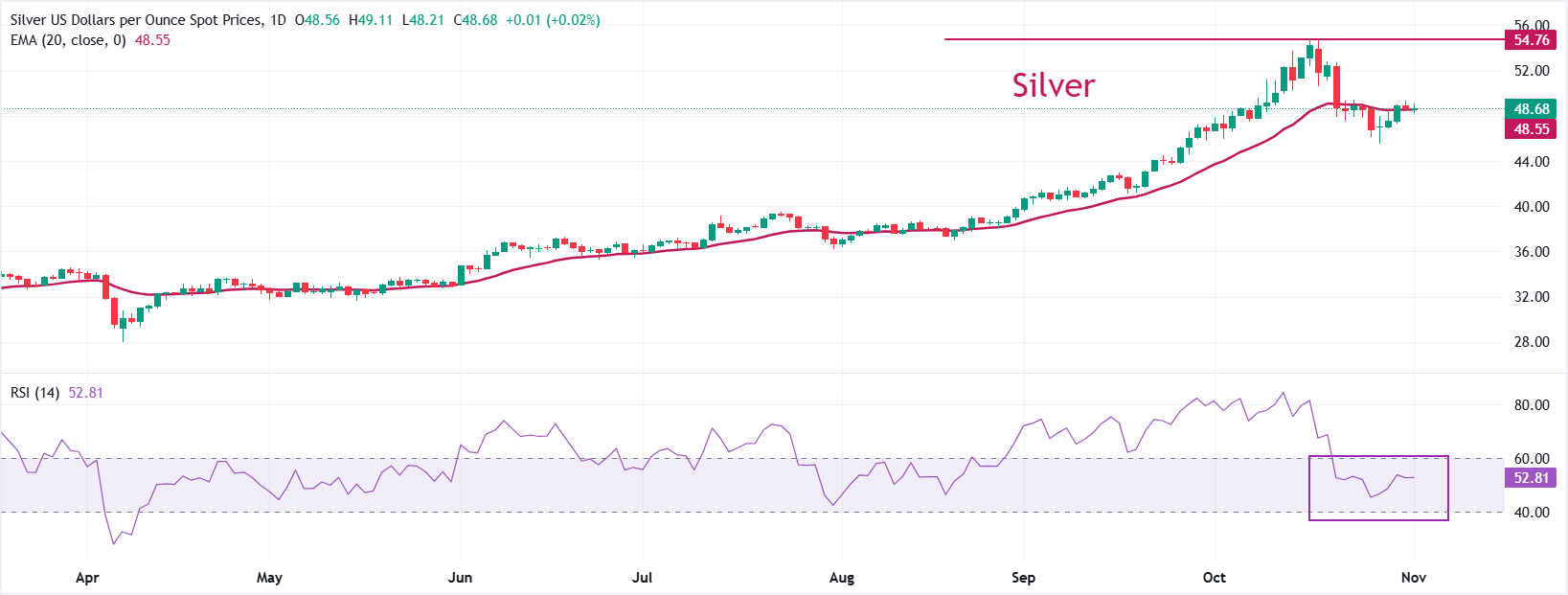 白银价格预测:白银/美元在数据密集的美国周初徘徊在48.70美元附近
