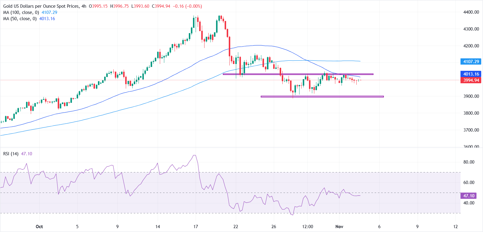 黄金(黄金/美元)周二承压,受到美元(USD)走强和美联储(Fed)谨慎态度的影响。截至发稿时,黄金/美元在3970美元附近交易,当日下跌近1%,在日内低点接近3928美元后略有回升。