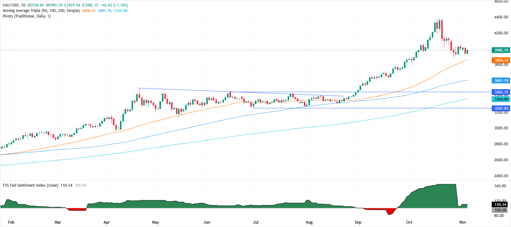 黄金(黄金/美元)价格在周三上涨超过 1%,此前美国(US)发布了一系列经济数据,这增强了美元(USD)的强势,同时也推动了黄金的上涨,目前交易价格约为 3980 美元,日内最低触及 3929 美元。