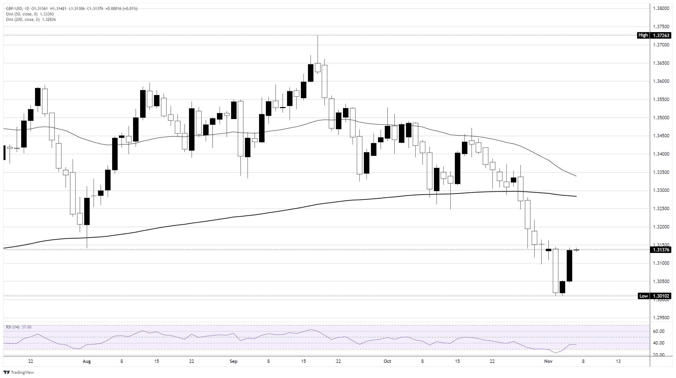 英镑/美元延续急需的反弹,英镑回升至1.31