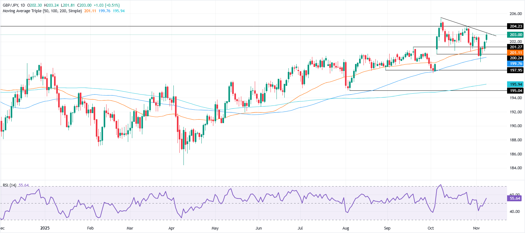 英镑/日元价格预测:突破203.00,牛市瞄准204.25