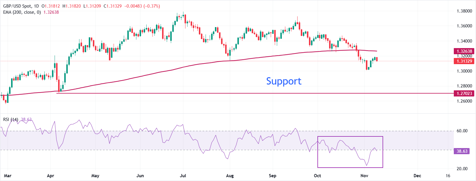 英镑(GBP)在周二对主要货币大幅下跌。由于截至9月的三个月英国劳动市场数据表明就业市场状况进一步恶化,英镑走弱。