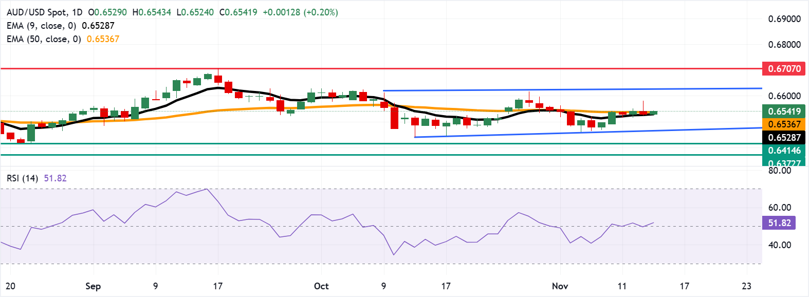 周五,澳大利亚元(AUD)兑美元(USD)上涨,收复了前一交易日的损失。在中国10月份工业生产和零售销售数据公布后,澳元/美元小幅走高。