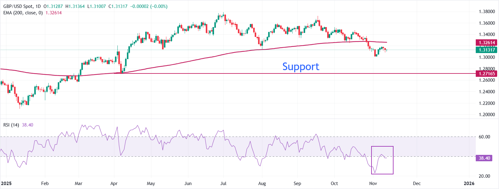 英镑因英国第三季度国内生产总值(GDP)和劳动数据疲软而下跌