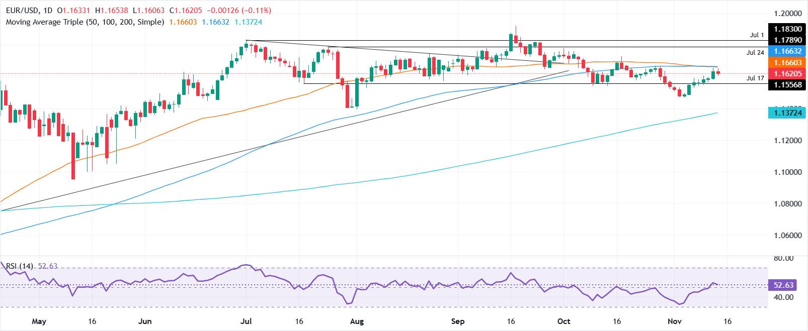 欧元/美元尽管因美联储降息预期削减而出现周度回调,仍紧守1.1600