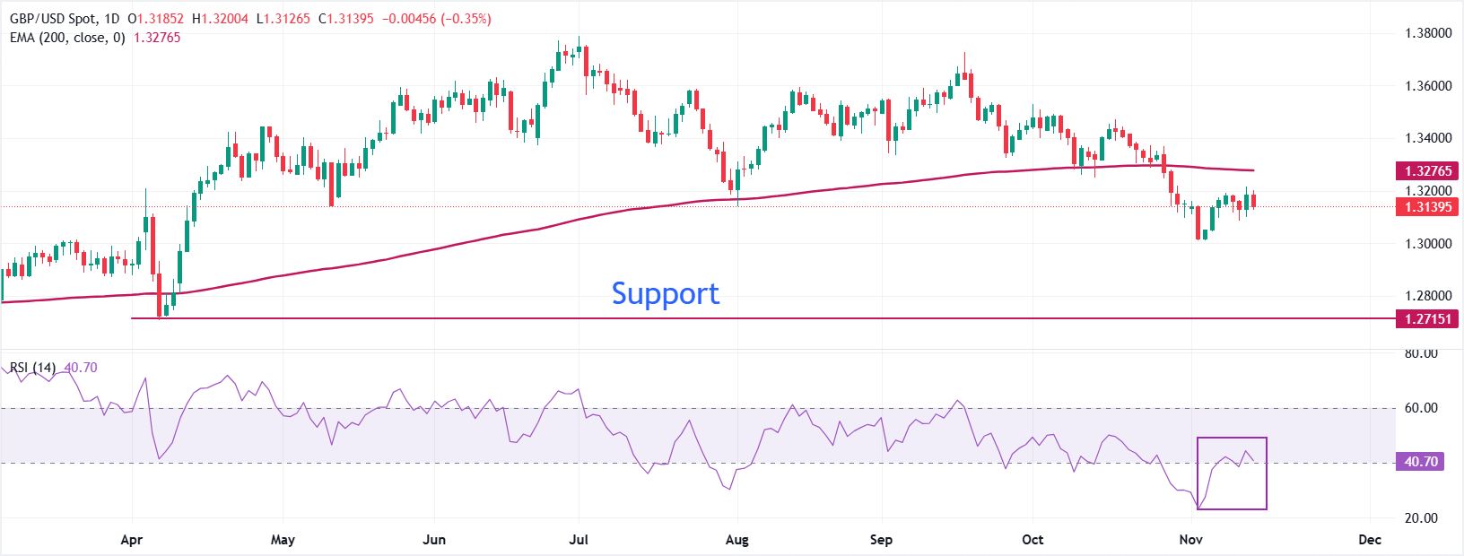 在周五的欧洲交易时段,英镑(GBP)兑美元(USD)下跌0.4%,接近1.3130。由于英镑仍处于弱势,而美元强劲反弹,GBP/USD面临卖压。