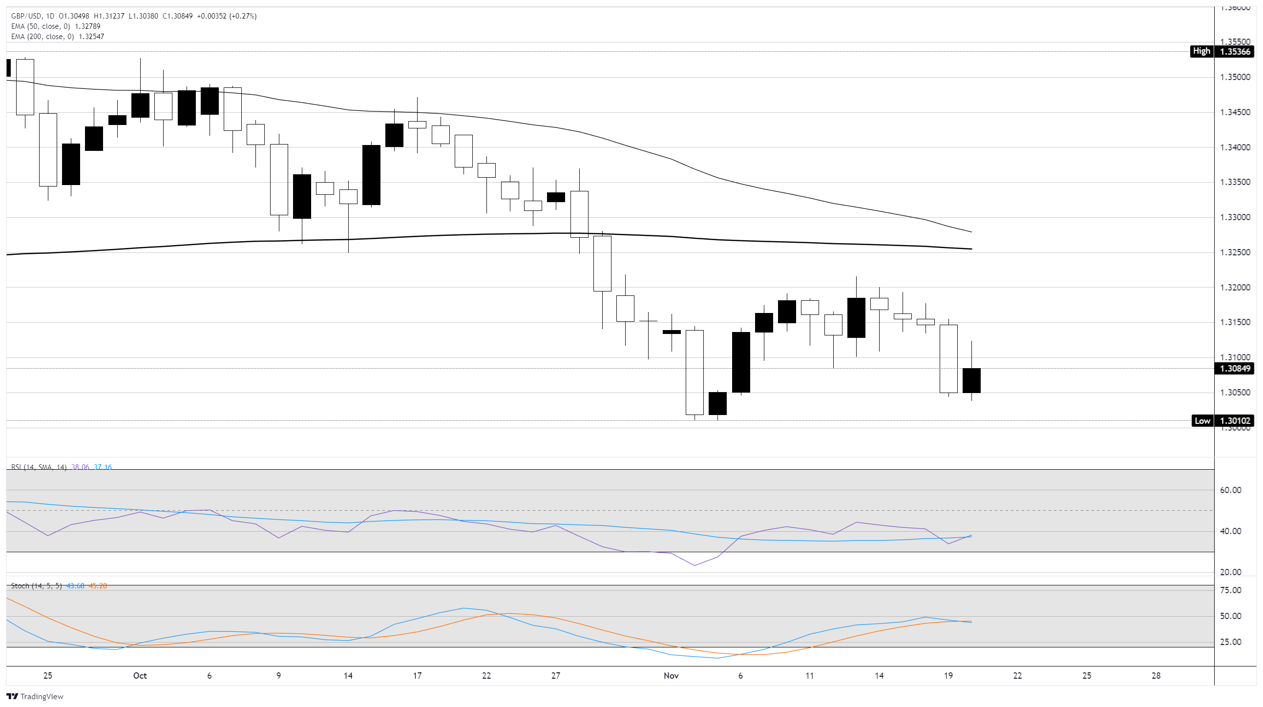 英镑/美元在周四结束了四天的下跌趋势,从1.3050区域获得了一次微弱的技术反弹。尽管英镑价格走势仍然处于长期移动均线的看跌一侧,但投资者在周五的数据日程之前正在喘口气
