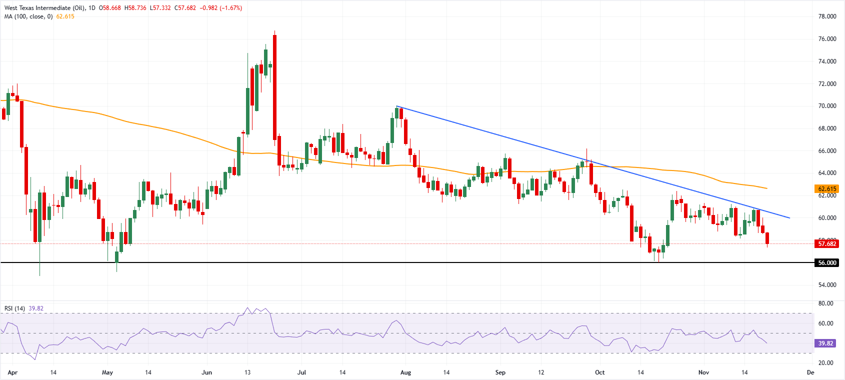 在撰写本文时,西德克萨斯中质原油(WTI)价格在周五约为 57.60 美元,日内下跌 1.90%。