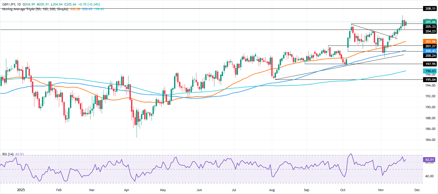英镑/日元价格预测:因日元走弱上涨0.35%,测试206.00