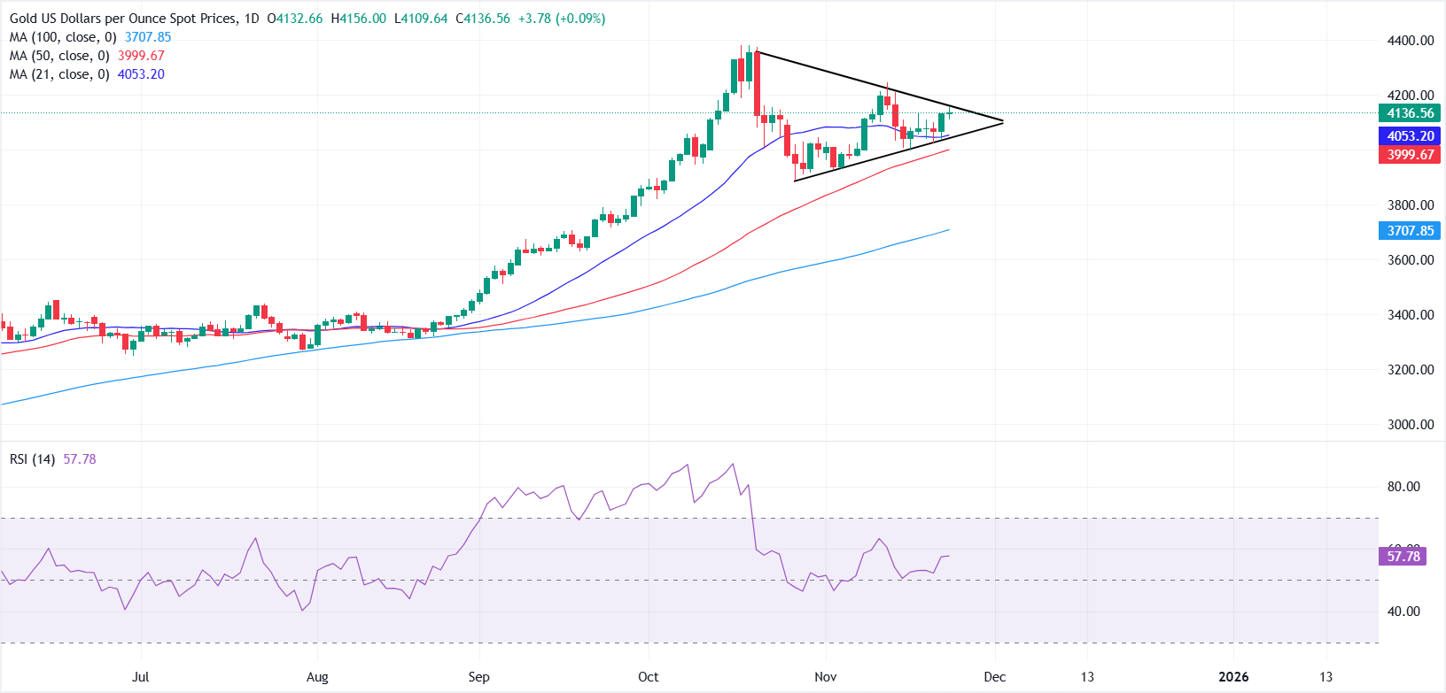 周二,黄金(黄金/美元)表现坚挺,因为交易商在美联储(Fed)决策者发表鸽派言论后,预计12月份降息的可能性更大。