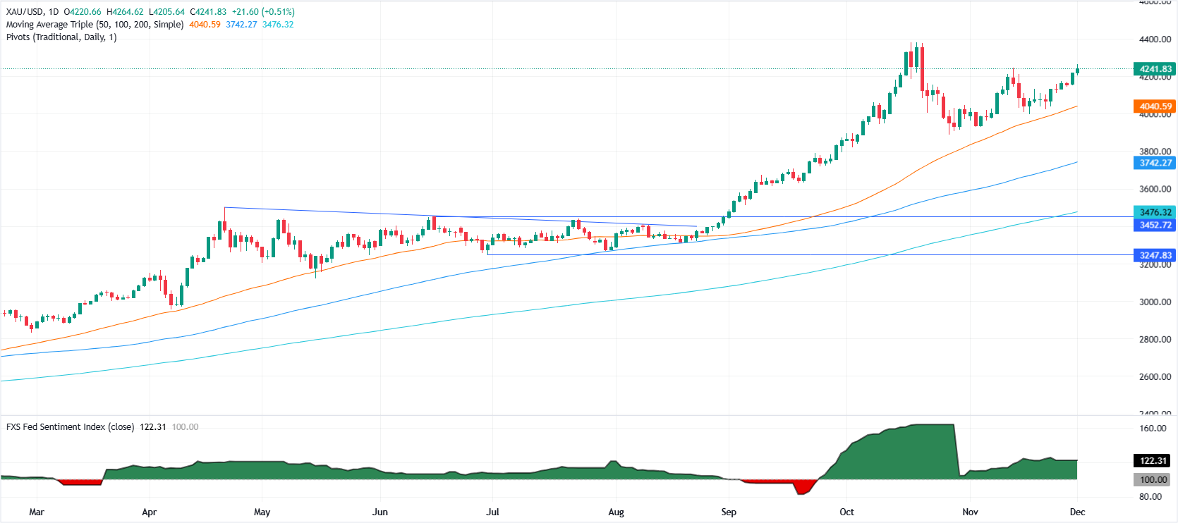 金价因美联储降息狂潮而触及五周高点,逼近4264美元