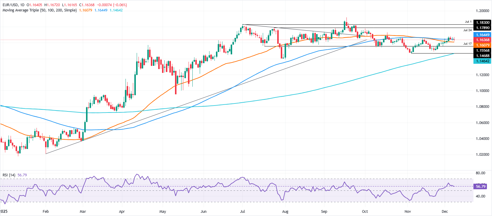 随着一周的开始,欧元/美元因美国美元的普遍强势下滑0.05%,交易波动剧烈,交易者在为美联储的货币政策决定做准备。撰写时,该货币对交易于1.1637,之前触及日高1.1672。