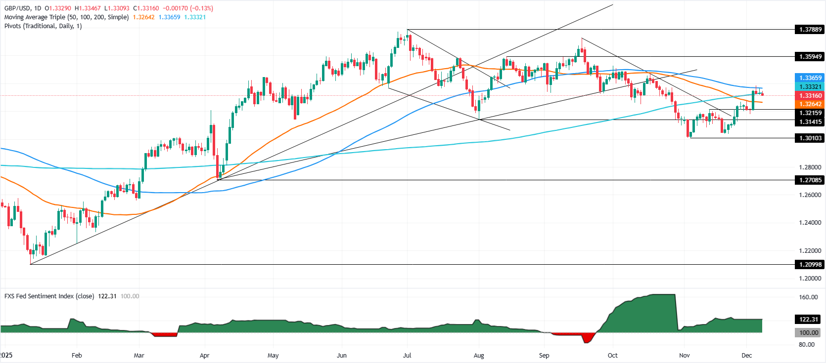 英镑/美元周一在1.3325附近保持坚挺,低于200日简单移动平均线(SMA)1.3329,投资者在等待美联储(Fed)货币政策决策,这使得美元(USD)在G10外汇市场保持稳定