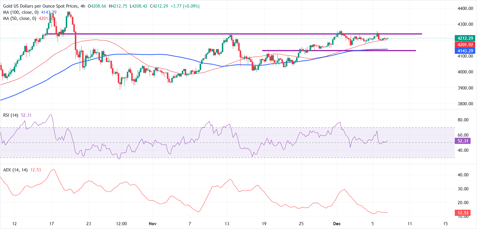 黄金(黄金/美元)以平静的姿态开启本周,交易商在美联储(Fed)周三的利率决议前不愿意采取新的头寸。截至发稿时,黄金/美元交易在4190美元左右,继日内最高点4219美元后回落。