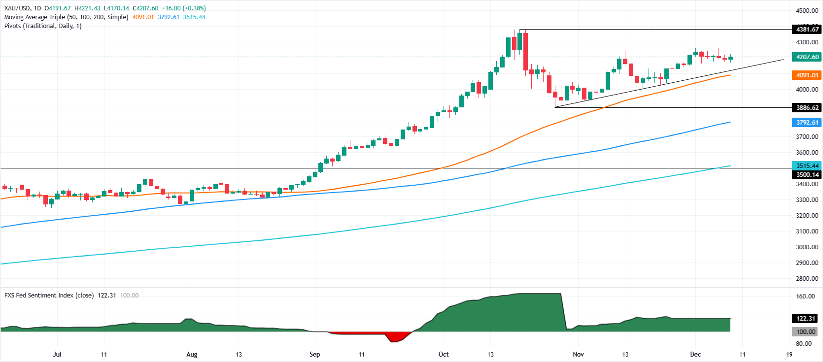 金价无视美国就业数据强劲,因美联储宽松预期飙升至4200美元以上
