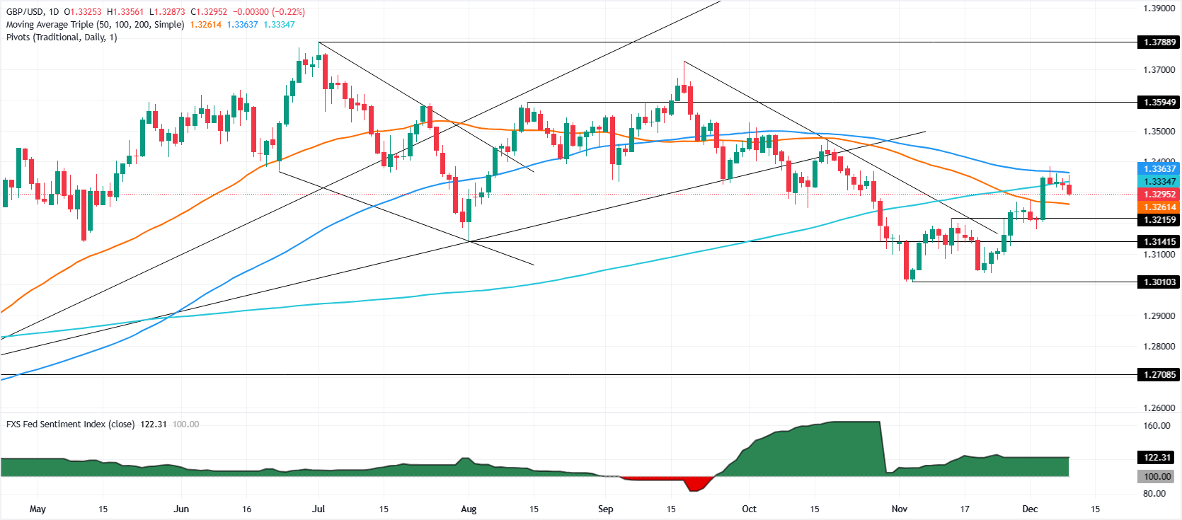英镑/美元跌破200日简单移动均线(SMA)1.3331的关键支撑位,周二下跌约0.21%,因为交易商在为美联储(Fed)周三的政策决定做准备