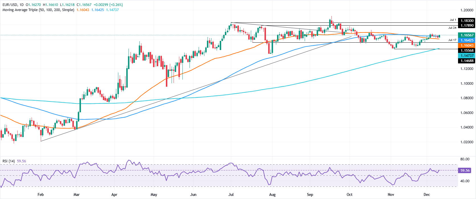 周三,欧元/美元上涨超过0.59%,因美联储如预期降息,这被视为“鸽派按兵不动”,促使交易者抛售美元,买入欧元。截至发稿时,该货币对交易接近日高1.1695,之前从日低1.1620反弹。