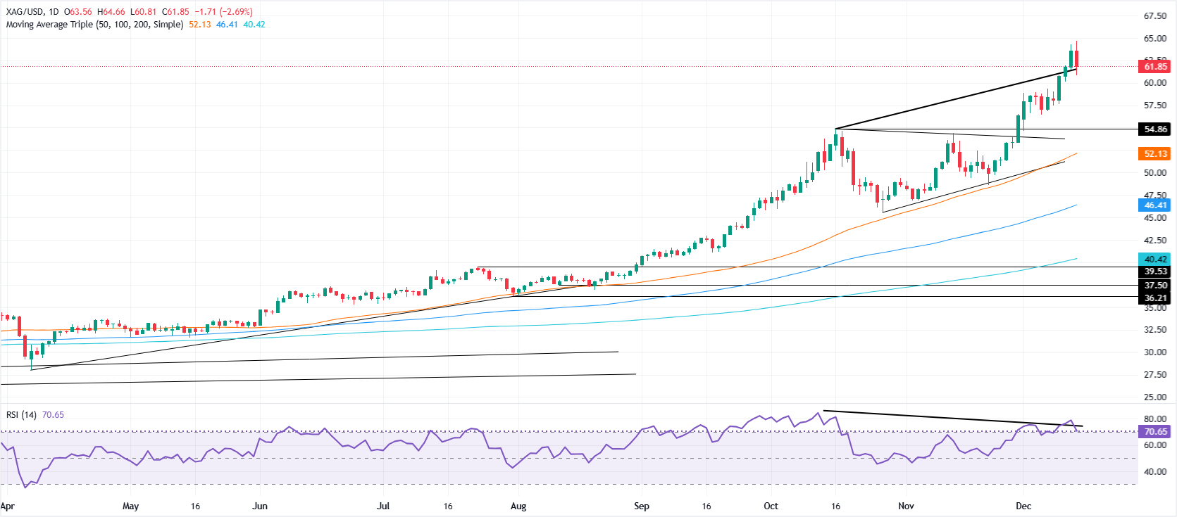 白银价格分析:在触及历史高点后下跌,回调风险隐现