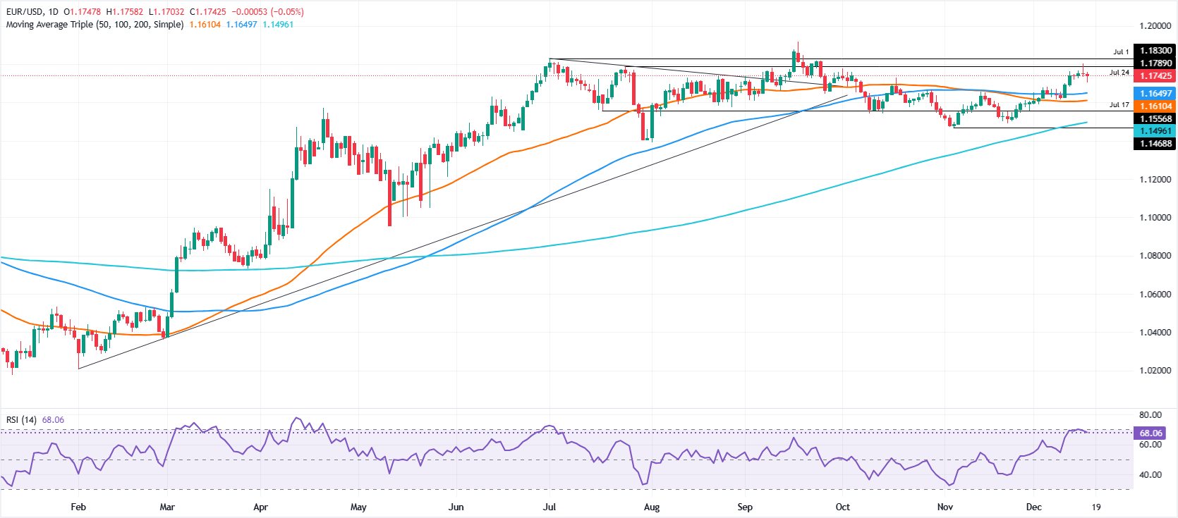欧元/美元在美元走强和欧元区通胀放缓的情况下维持平稳