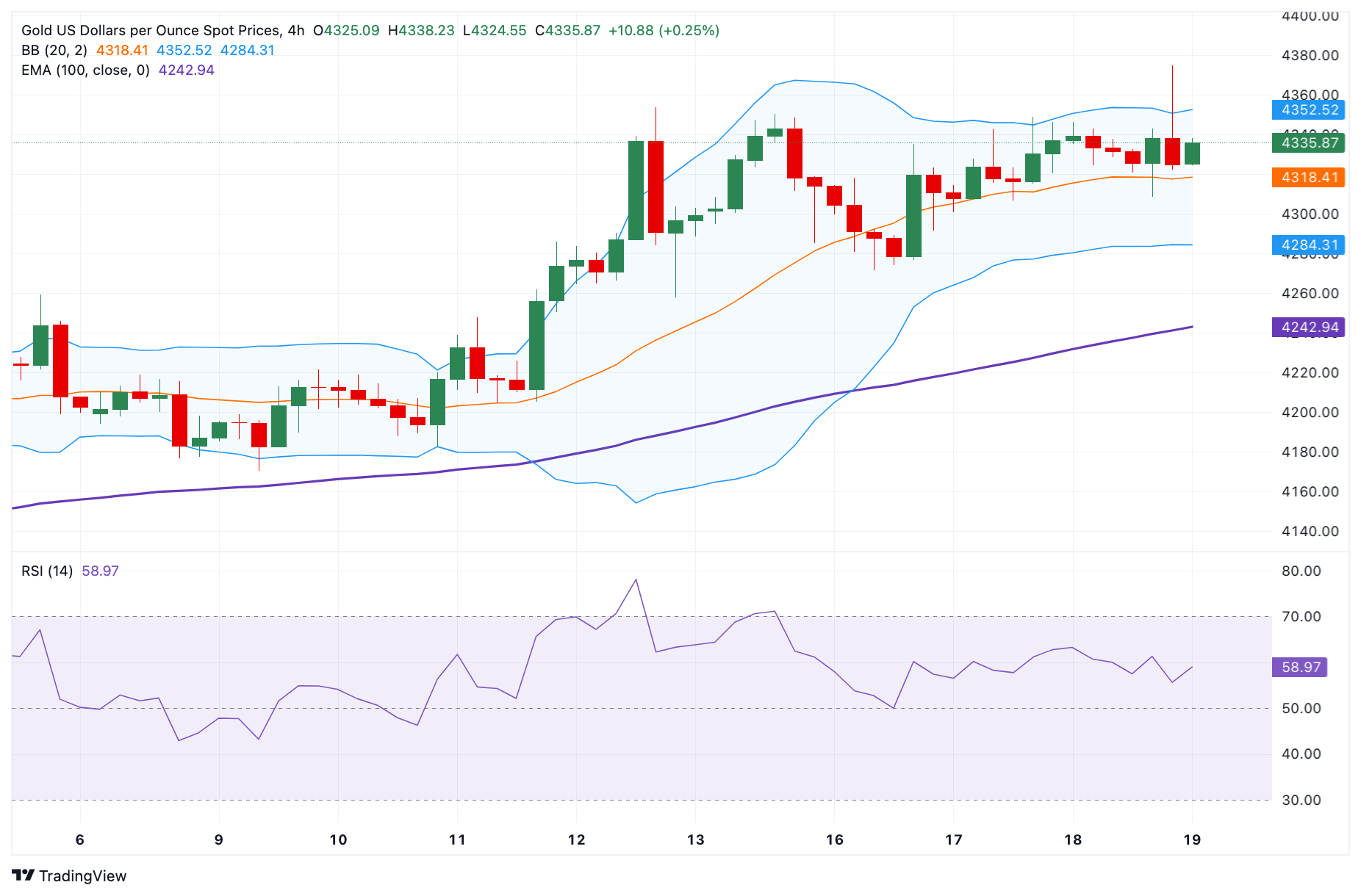 周五亚洲时段早盘,金价(黄金/美元)下跌至4350美元以下。由于一些获利了结和短期期货交易者的弱势平仓,该贵金属小幅走低。