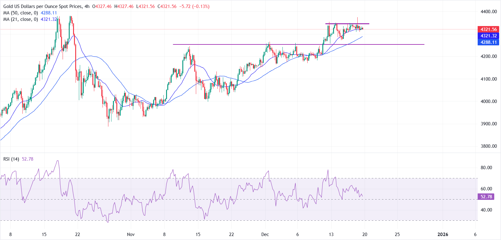 黄金在坚挺的美元背景下 consolidates 在$4,350附近