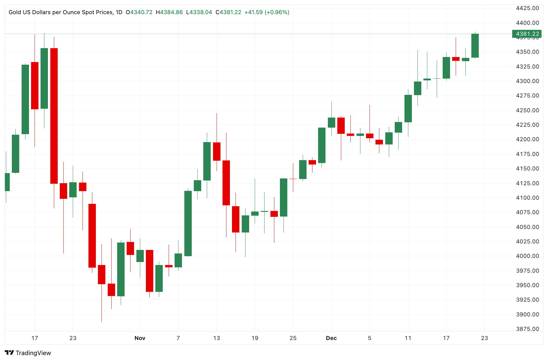 突发:黄金在避险资金流入中达到历史新高,接近4380美元