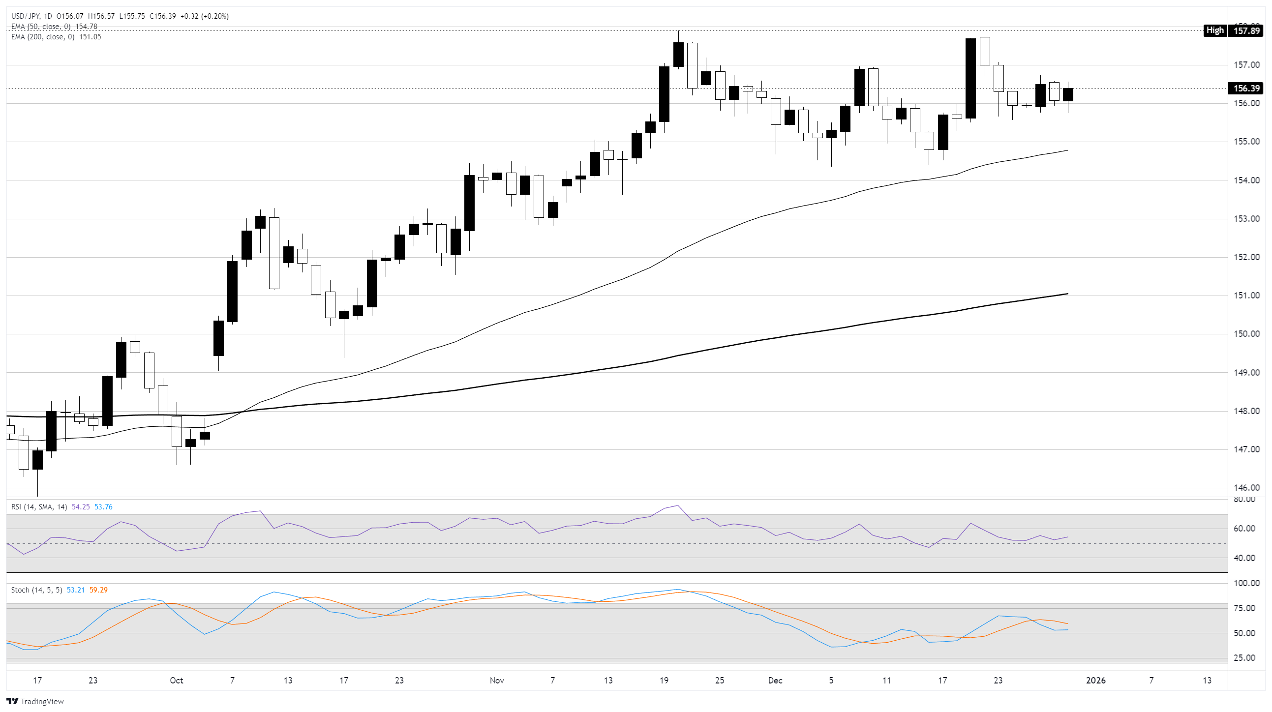 美元/日元在2025年交易年的最后一周仍然被困在156.00关口附近的短期区间内。日元交易者面临多重阻力,日本央行(BoJ)对日元市场的困扰风险占据了很大一部分。