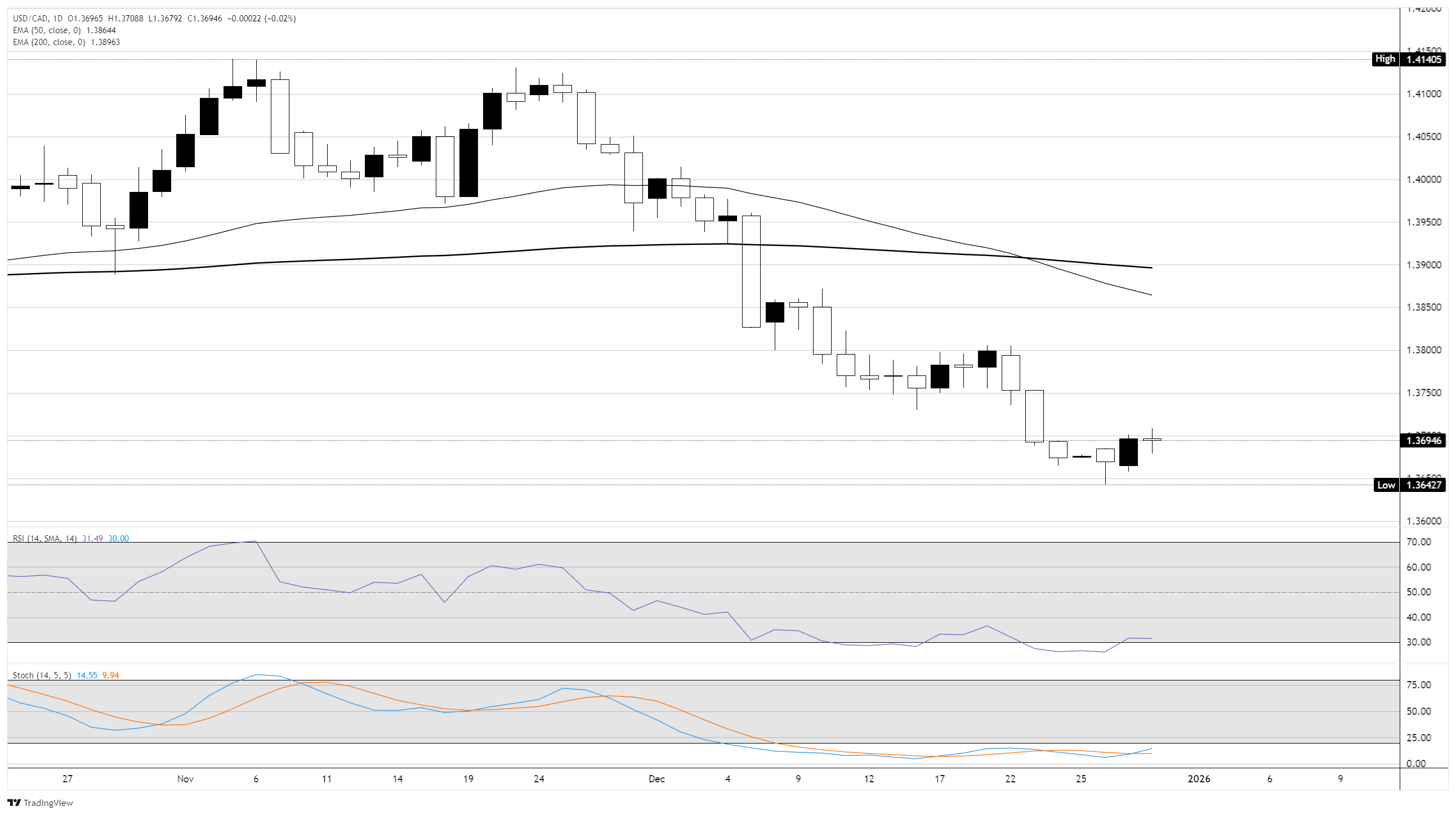 周二,加拿大元(CAD)持平,在与美元(USD)的短期区间内波动,因为市场在年末放缓中缓慢前行。市场动能缺乏,大多数市场参与者在2025年最后一个交易周中处于观望状态