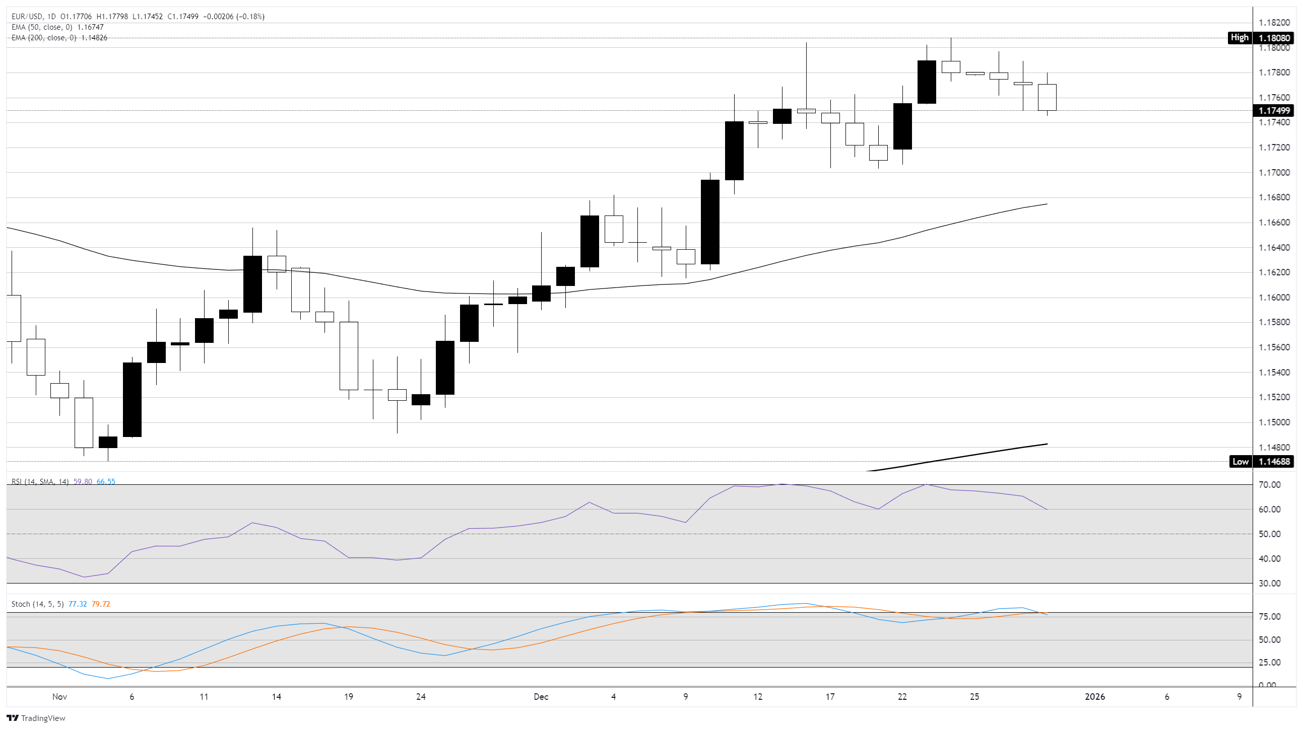 欧元/美元周二滑落至1.1750区域,回落了不足五分之一的百分比,此前经历了几天的温和下跌
