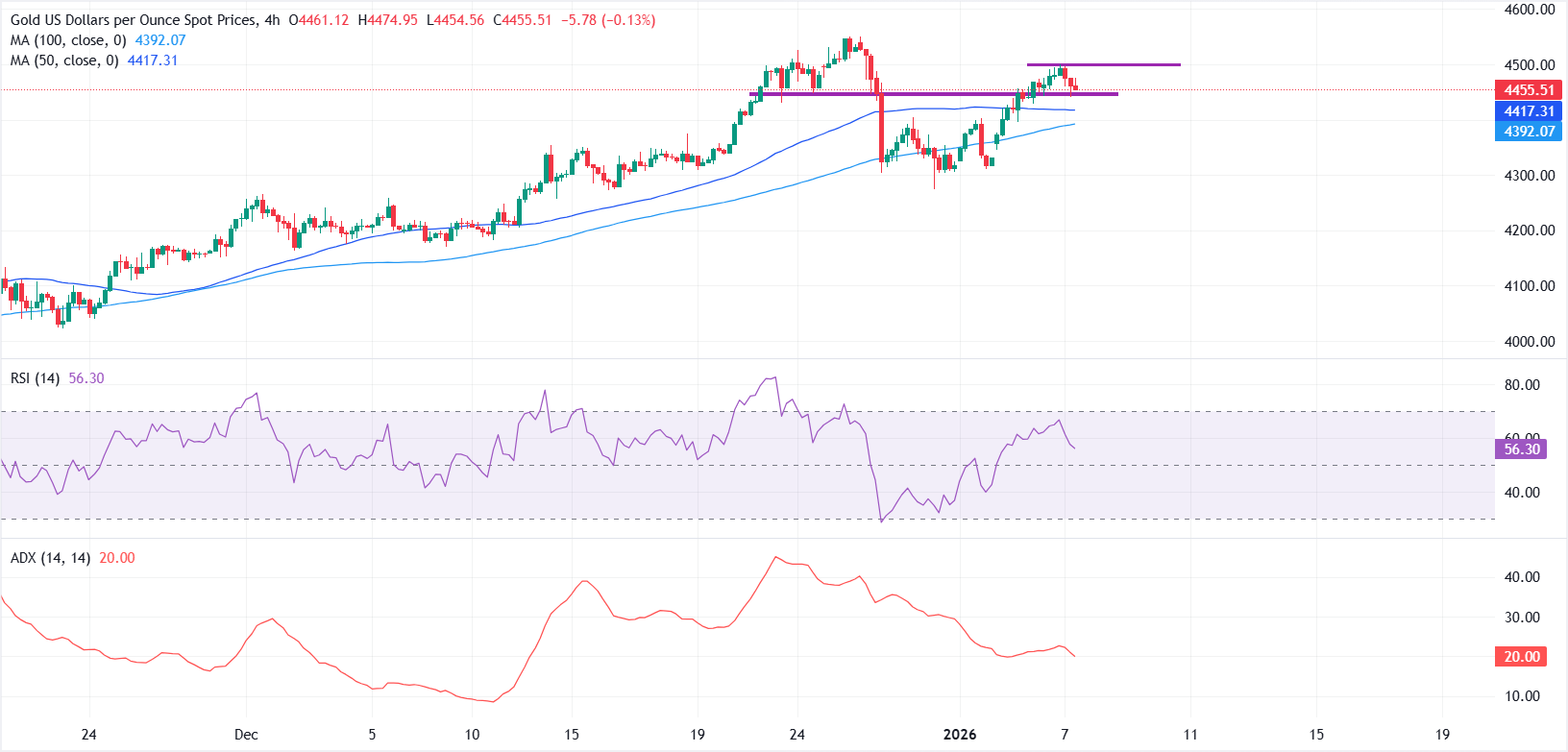 黄金(黄金/美元)周三走势疲软,因在4500美元的心理关口附近出现卖压,导致高位出现轻微的获利了结。