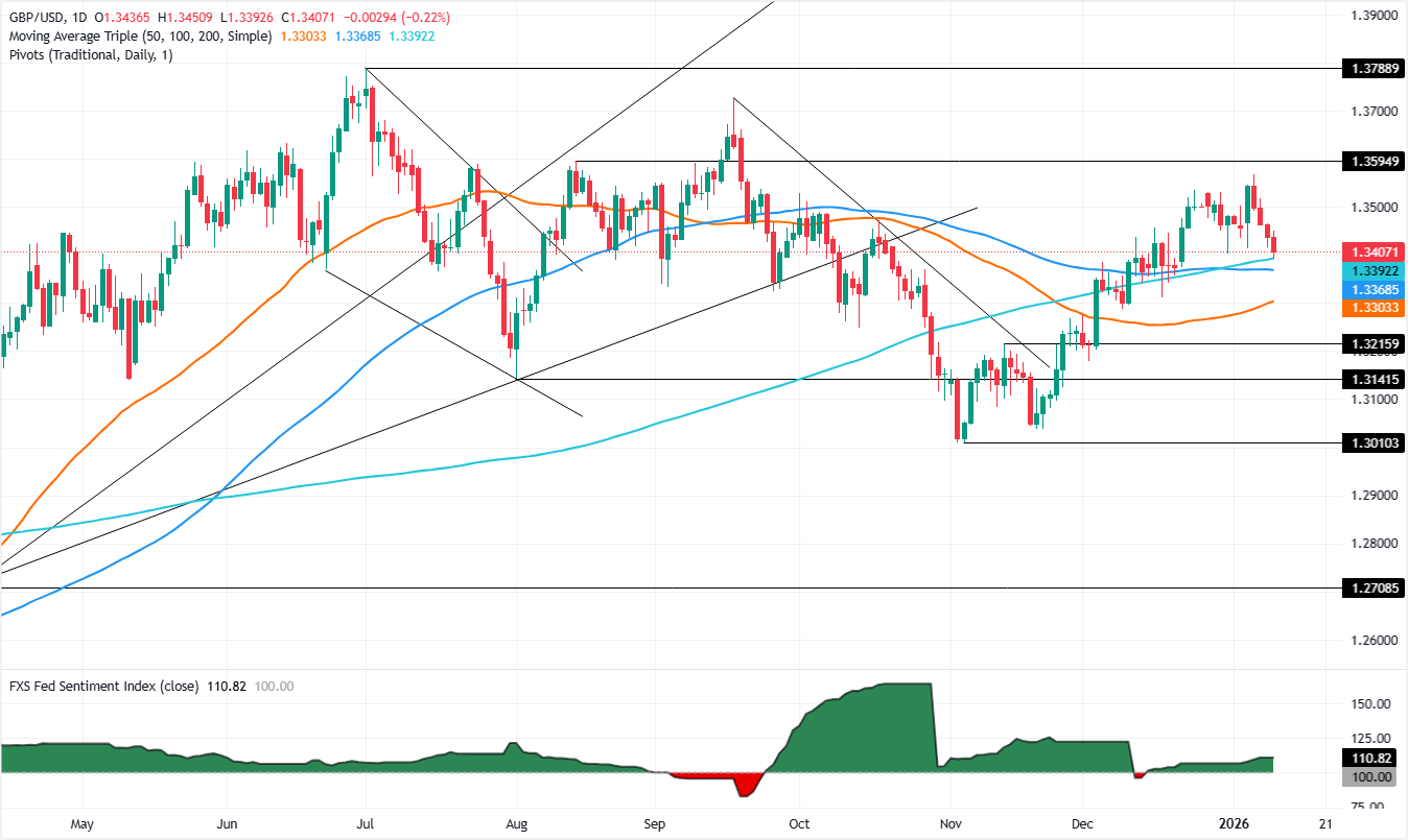 英镑(GBP)在周五回落,此前12月份的非农就业报告数据喜忧参半,尽管交易者降低了对1月份降息的押注。截至发稿时,英镑/美元交投于1.3412,曾触及1.3451的高点