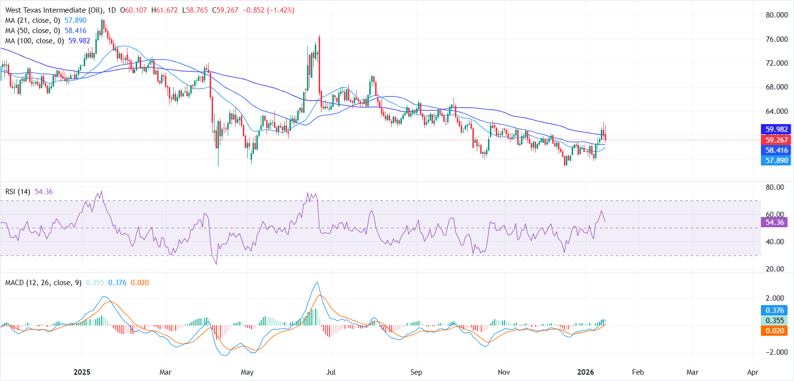 WTI价格预测:油价在60美元下方挣扎,看涨动能减弱