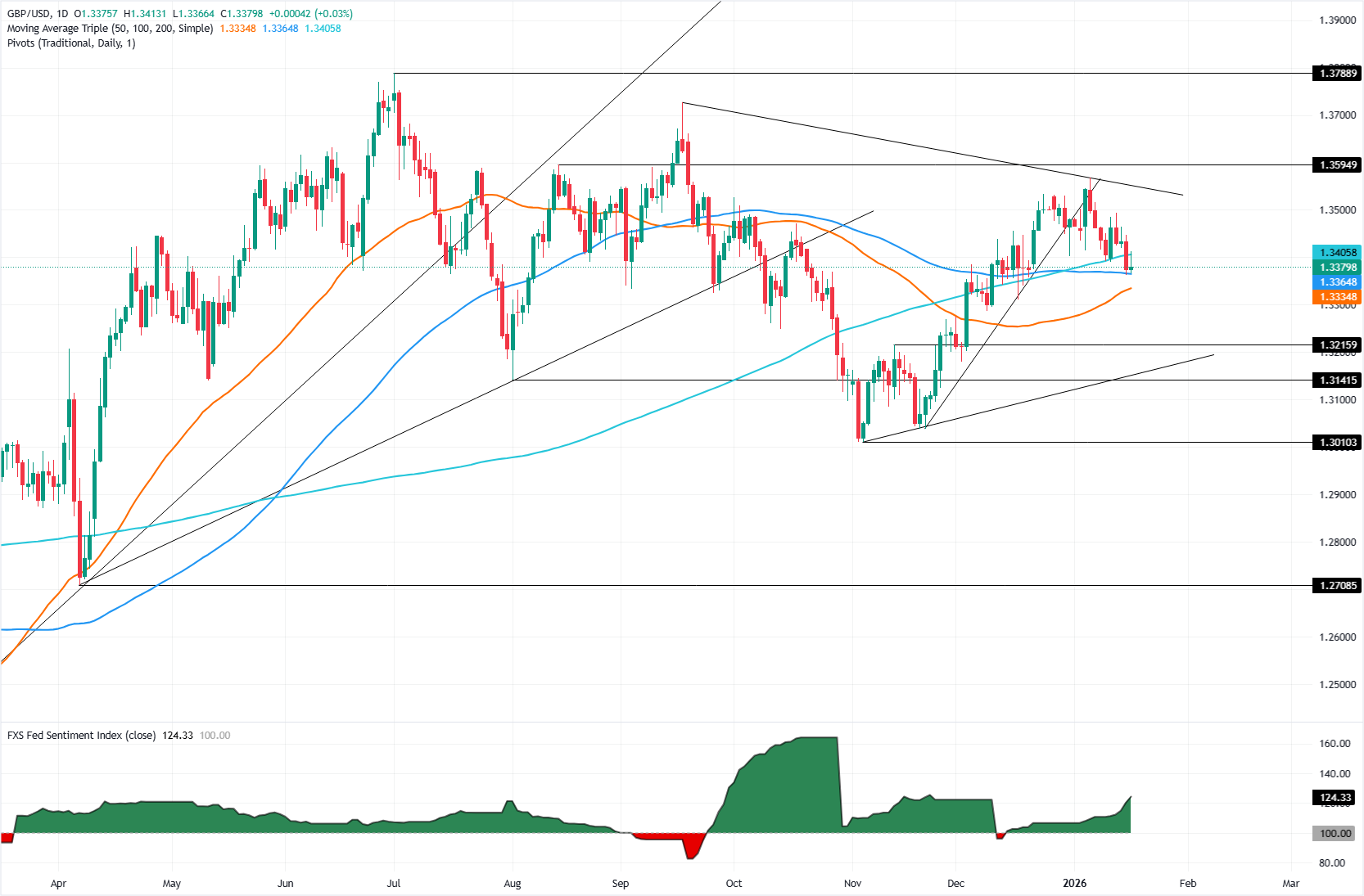 英镑/美元在1.3380附近持平,强劲数据提振美元
