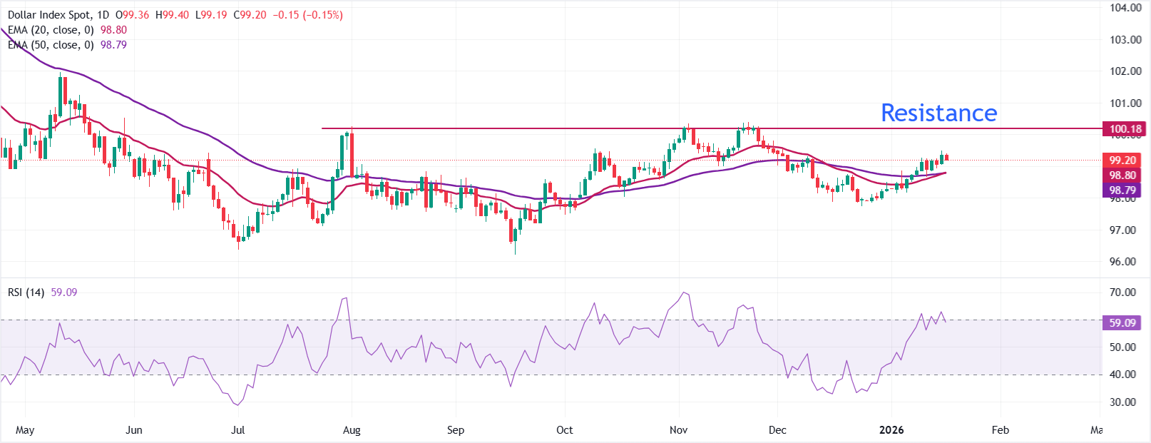 在周五的欧洲交易时段,追踪美元对六种主要货币价值的美元指数(DXY)下跌0.15%,接近99.20,自前一天创下的六周高点99.50修正,正值美国(US)即将迎来延长的周末。
