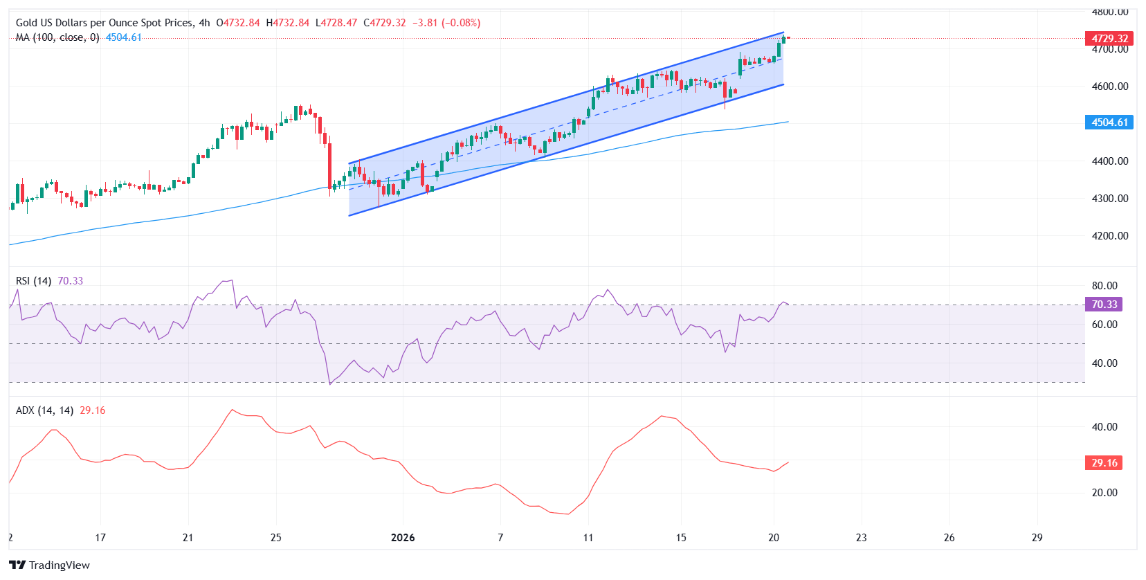 黄金(黄金/美元)在周二再次创下新高,攀升至4700美元的心理关口之上,因地缘政治紧张局势加剧推动了强劲的避险需求。在撰写本文时,黄金/美元交投于4725美元附近,略低于接近4751美元的历史新高。