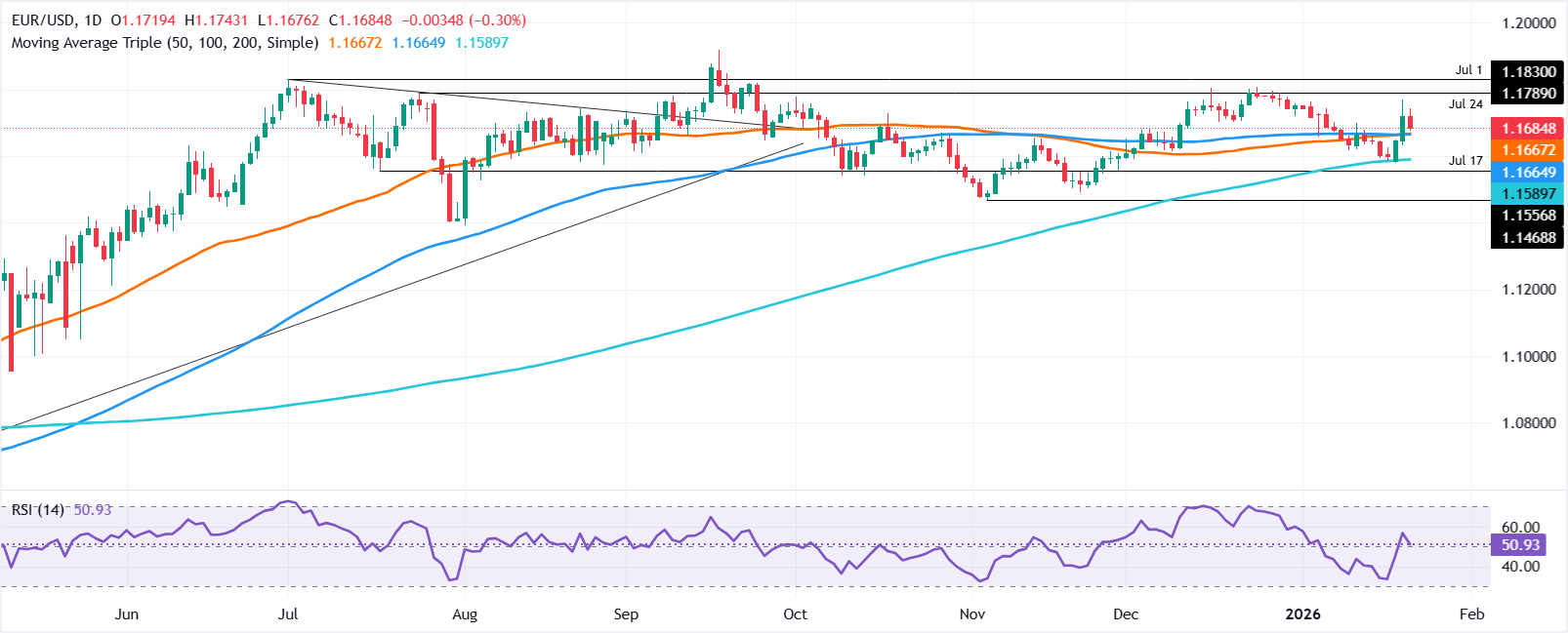 欧元/美元在北美时段周三晚些时候回落,因美国总统唐纳德·特朗普未对八个欧洲国家就格林兰讨论施加关税的威胁,录得超过0.30%的损失。