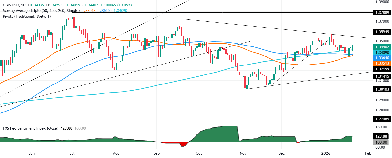 英镑/美元在1.3430附近下滑,因为特朗普缓和了对格林兰的言辞