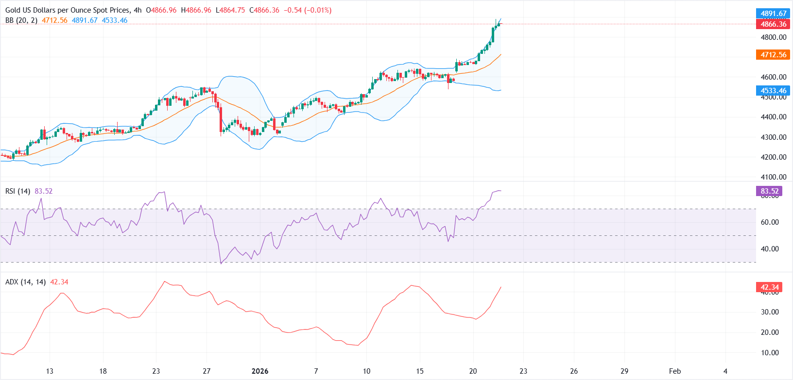 黄金(黄金/美元)在周三再次攀升至创纪录高点,因为全球市场风险情绪恶化,推动投资者转向避险资产,因地缘政治和经济不确定性上升。截至发稿时,黄金/美元在4855美元附近整理,此前在欧洲时段早些时候触及4888美元的历史新高。