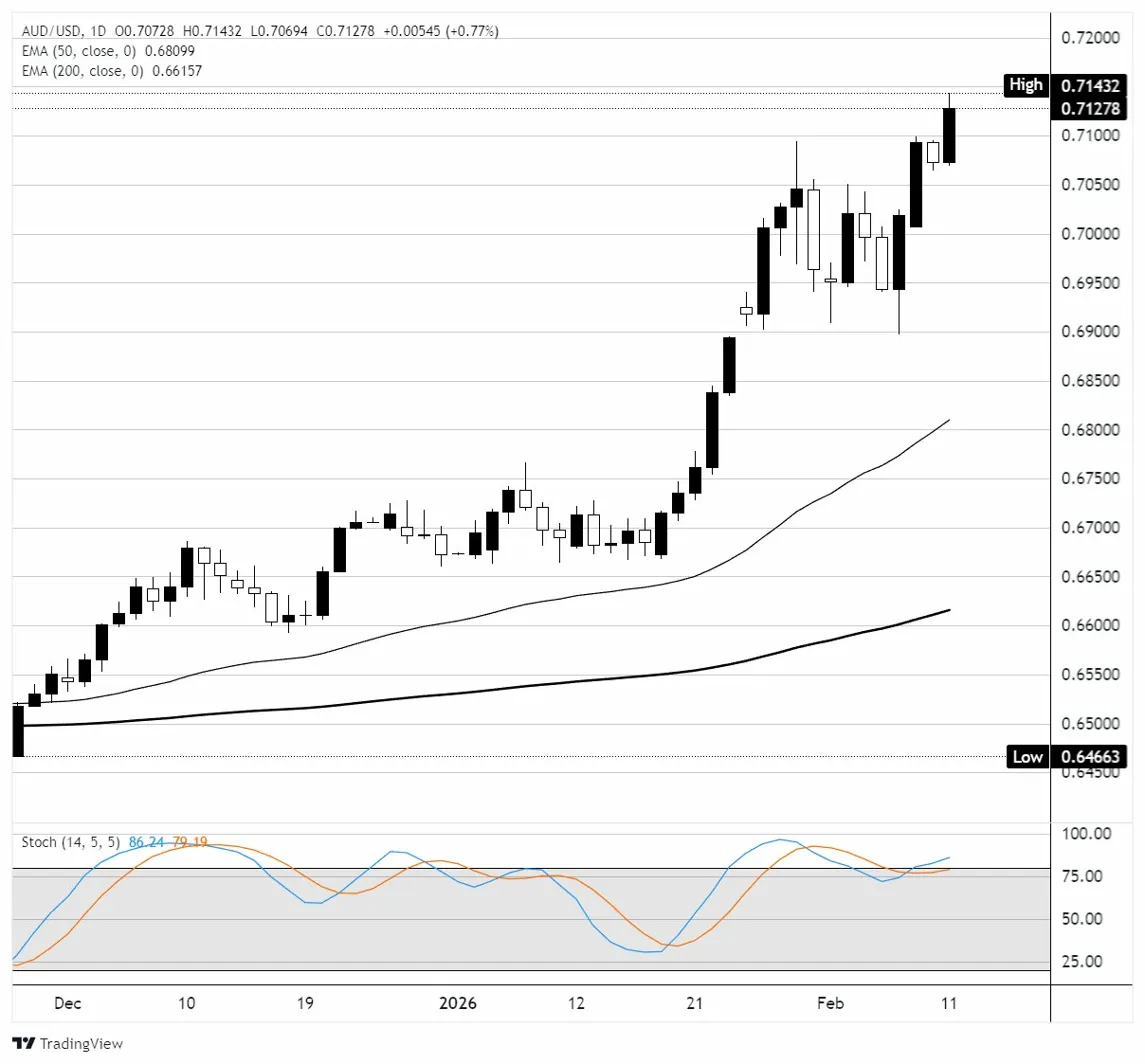 澳元在周三飙升至自2022年8月以来的最高水平,此前延迟发布的美国非农就业报告(NFP)显示就业人数强于预期,达到13万人,远高于70,000的预期,尽管2025年非农就业数据的大幅下调(仅2025年3月就下调了89.8万人)却给人留下了阴影