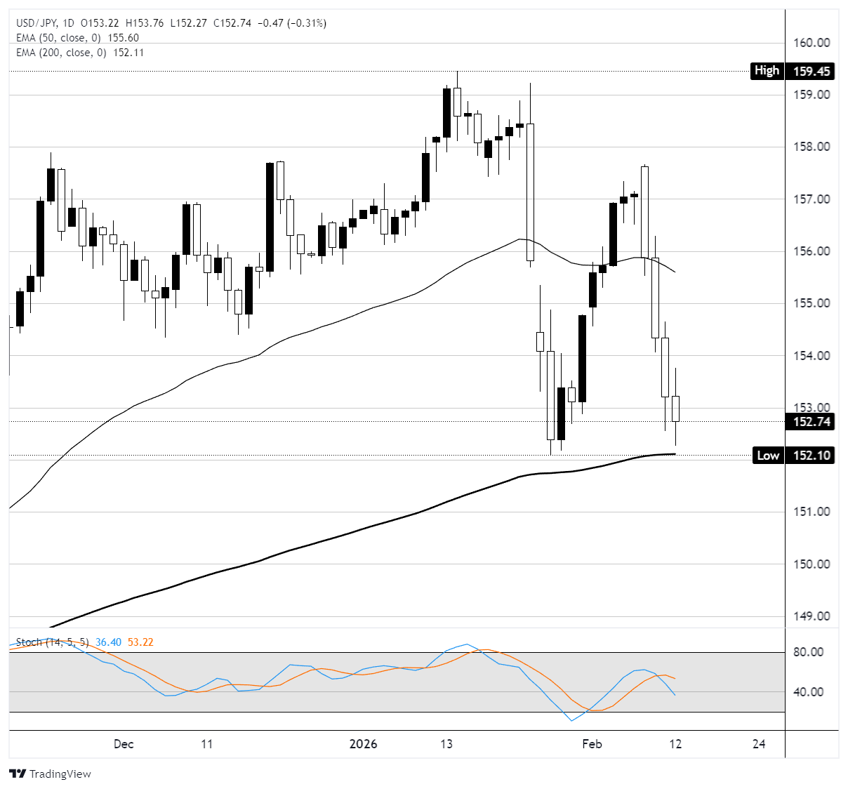 周四,日元兑美元汇率升破153,连续第四个交易日上涨,此前首相高市早苗在2月8日的决定性大选胜利为其追求扩张性财政政策提供了明确的授权。