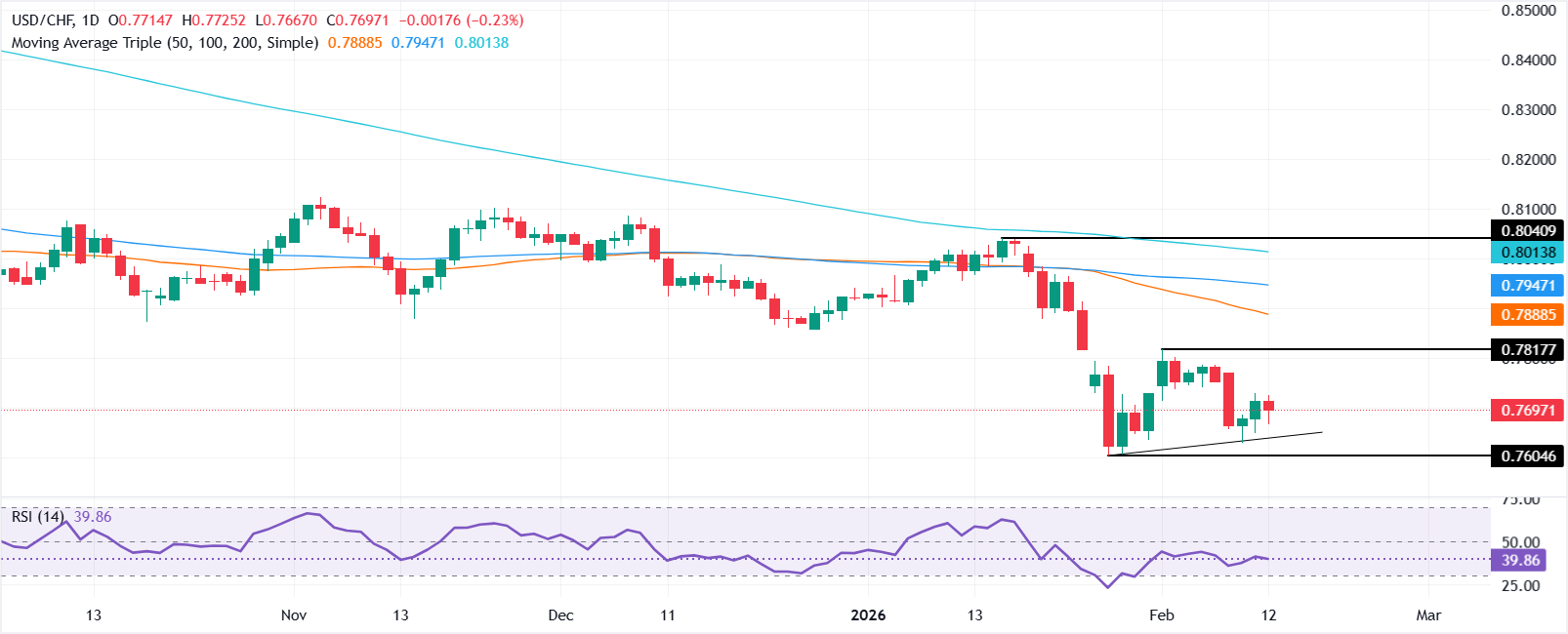 瑞士法郎(CHF)在周四继续对美元(USD)升值,此前美国就业报告略显疲软,且周三的非农就业数据影响了市场。尽管如此,美元未能反弹,美元/瑞郎交易于0.7700,下跌0.22%