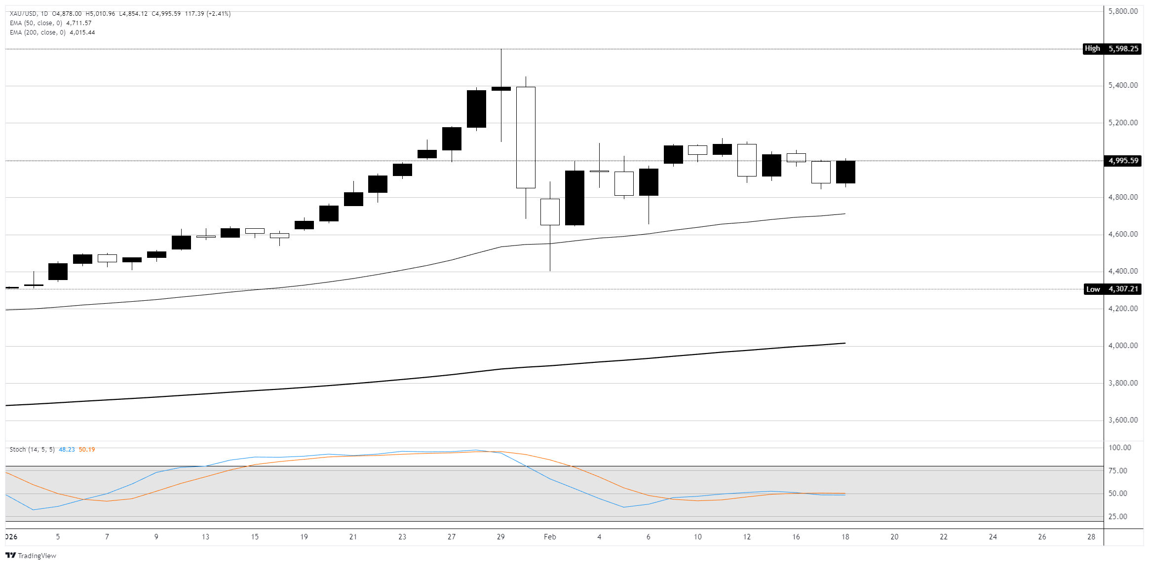 金价预测:黄金/美元在美联储政策线索公布前紧贴5000美元关口