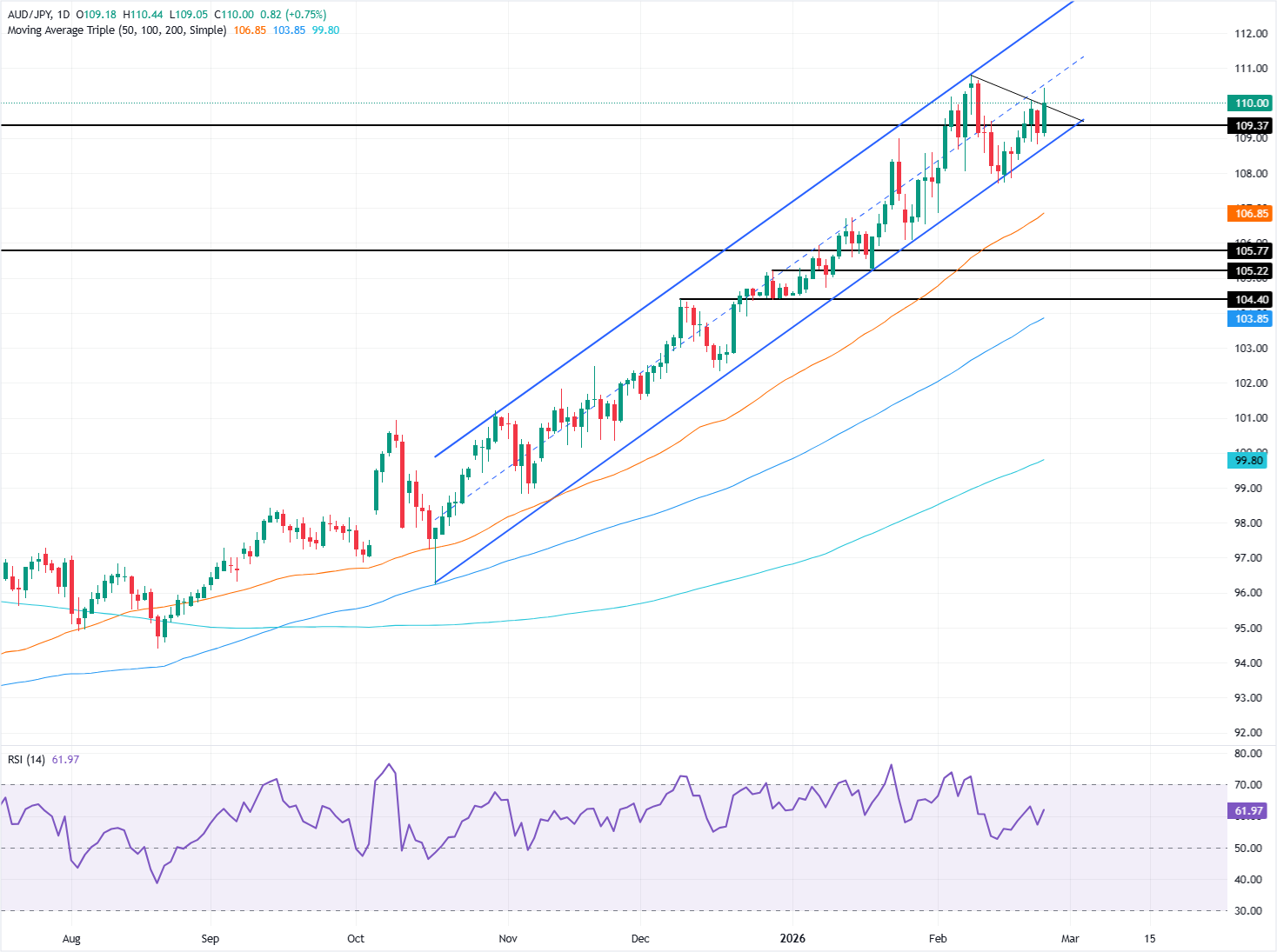 澳元/日元在北美交易时段末期大幅上涨,涨幅超过0.83%,因日元走弱,首相高市早苗对日本央行行长植田和男主导的进一步收紧政策表示更强烈的抵制。