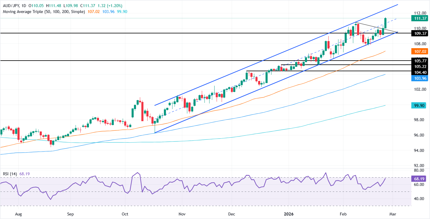 澳元/日元价格预测:因澳元CPI强劲,飙升至111.00以上