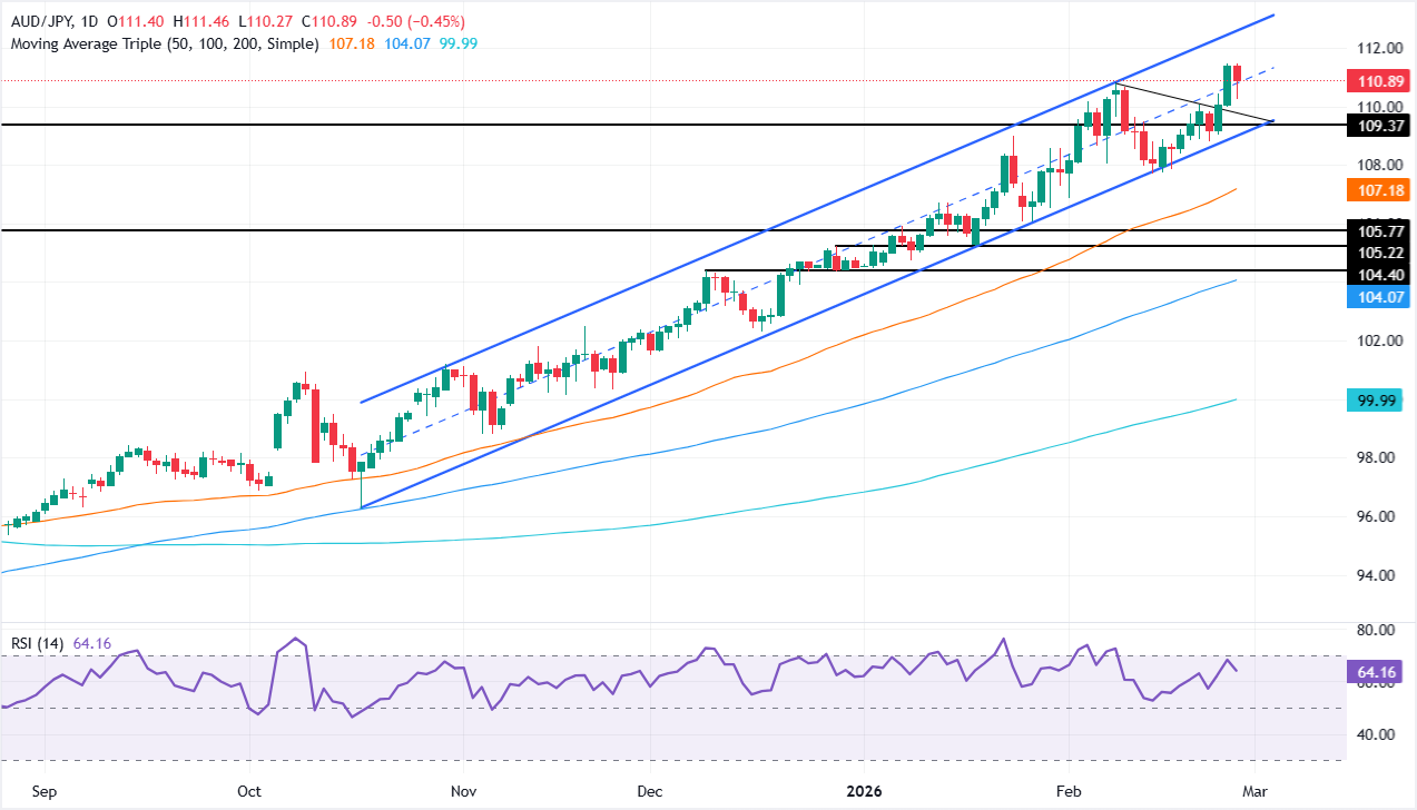 澳元/日元价格预测:尽管跌破111.00,上行趋势依然存在