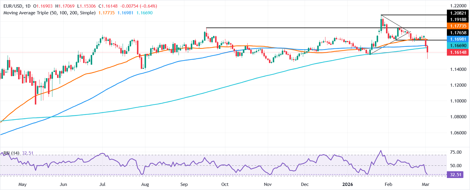 欧元/美元在北美时段小幅下跌,但在中东紧张局势加剧的情况下,从日内低点1.1530反弹,尽管欧元区通胀飙升。该货币对交易于1.1618,跌幅为0.63%