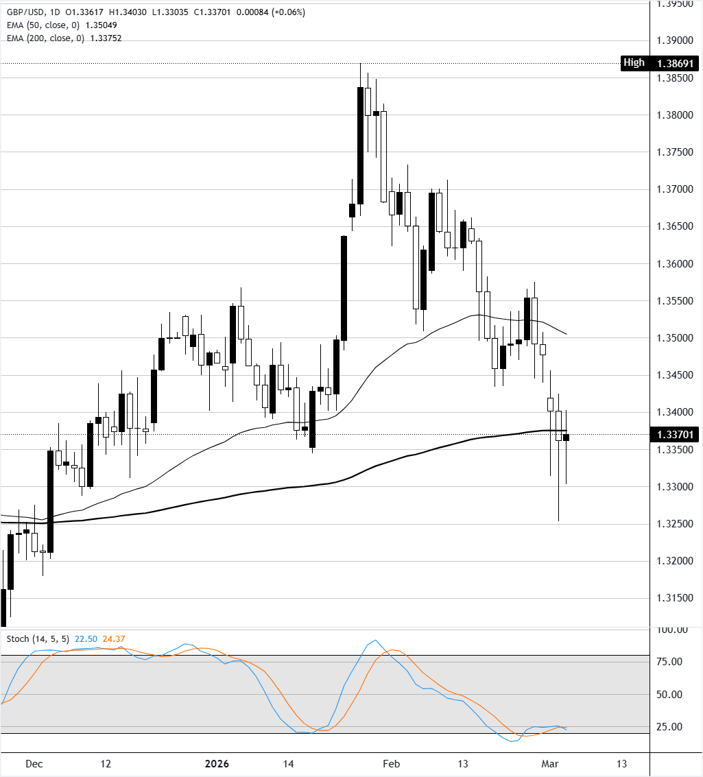 英镑/美元测试200日指数移动平均线,因增长下调施加压力