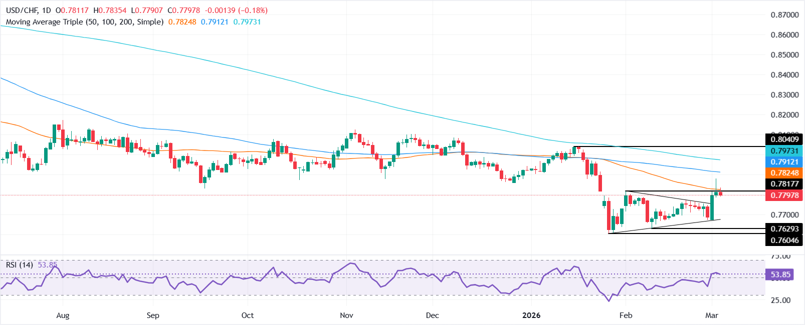 美元/瑞郎价格预测:在50日均线冲突后跌至0.7800以下
